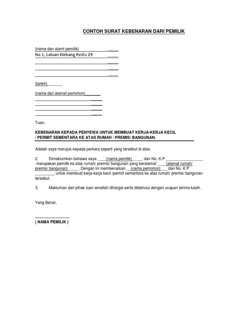 Pdf Contoh Surat Kebenaran Dari Pemilik Mr Z Academia Edu
